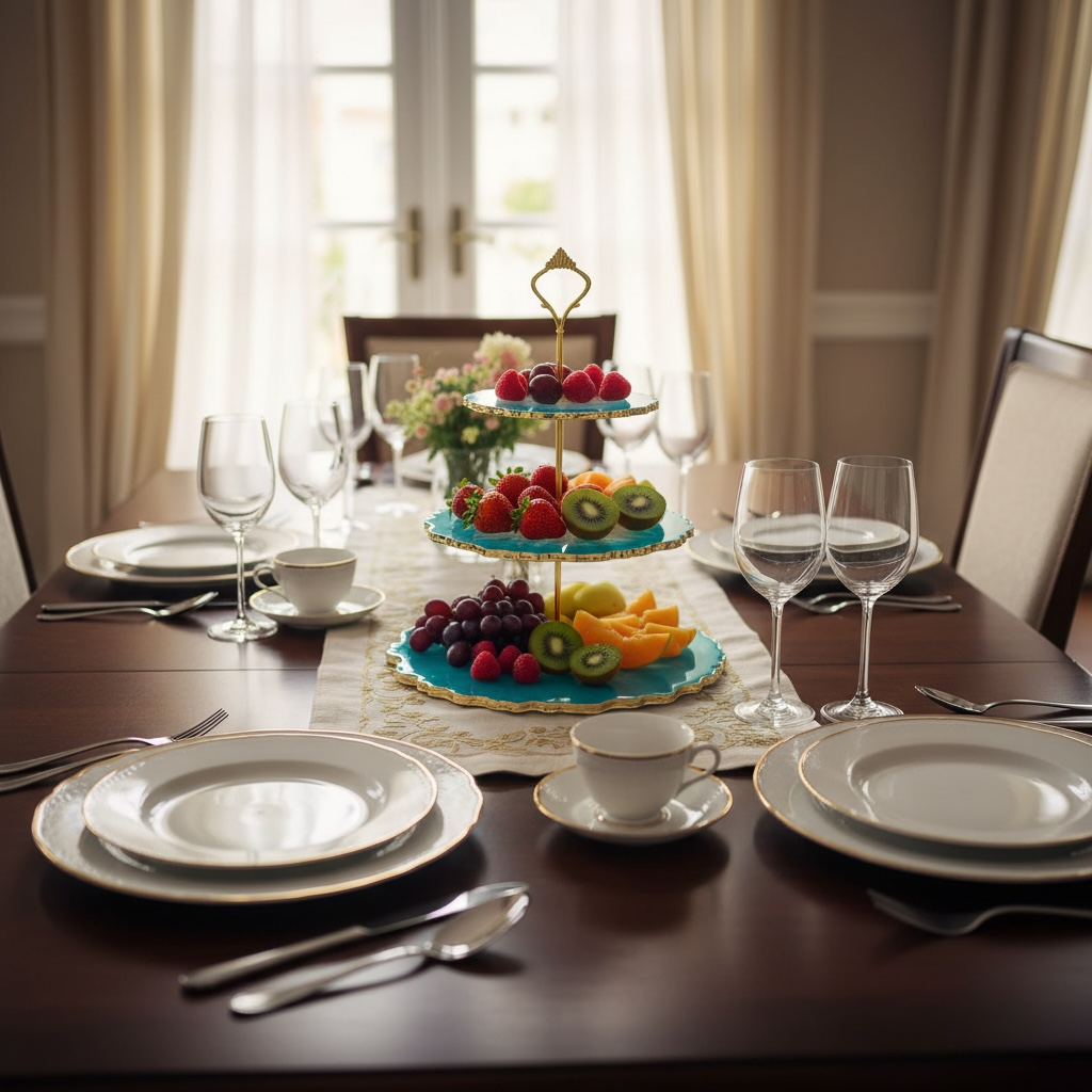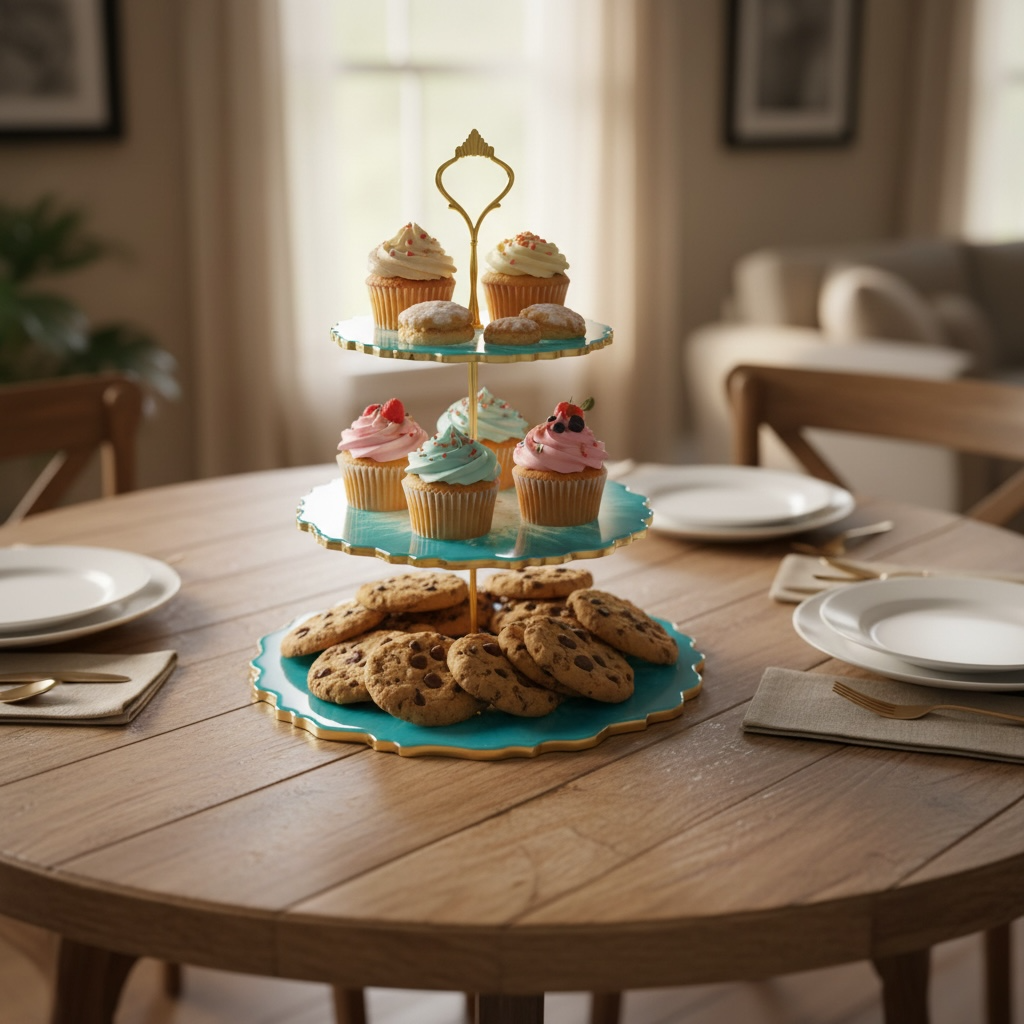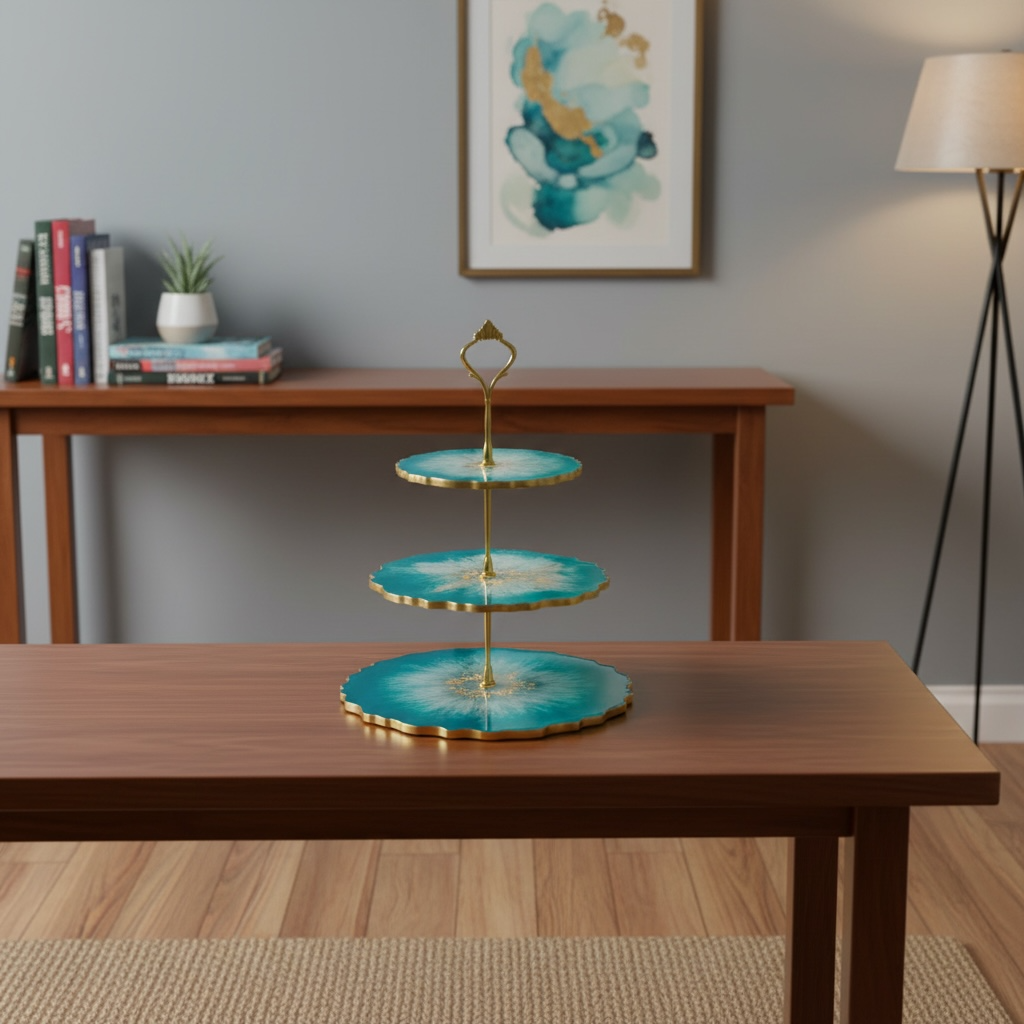 3-Tier Luxury Resin Serving Stand – Teal & Gold