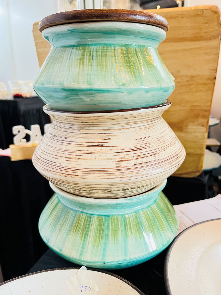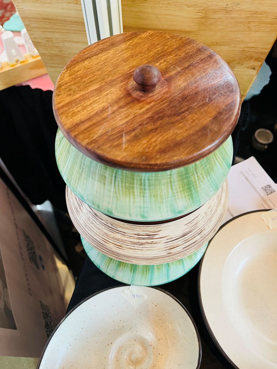 Ceramic Handi Set of 3 with Wooden Lids – Elegant • Earthy • Functional