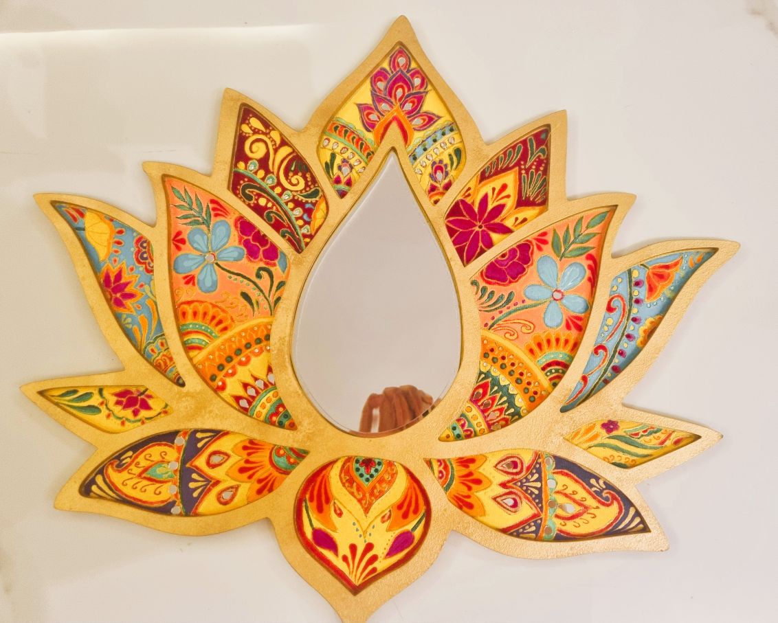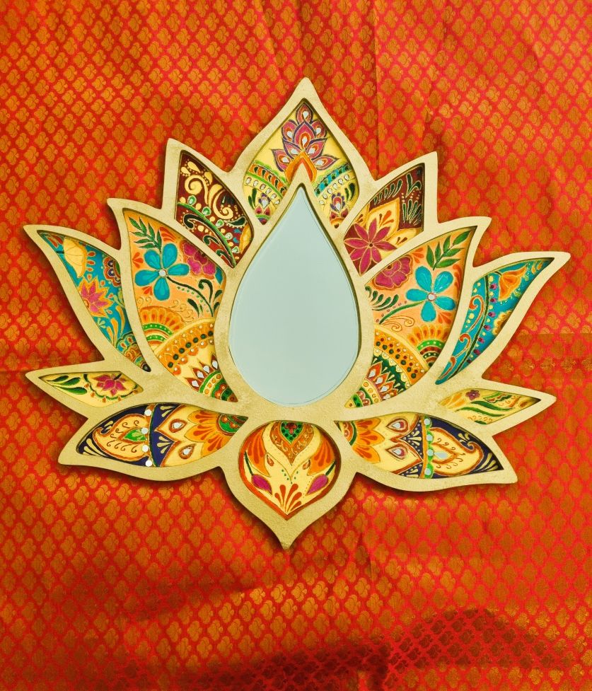 Perfect for living rooms, foyers, meditation corners, bedrooms, boutique studios, or serene office spaces—this mirror brings a calming yet elevated charm to any environment. It stands as a beautiful symbol of growth, purity, and inner peace, making it equally meaningful as a gift for weddings, housewarmings, anniversaries, and festive celebrations.