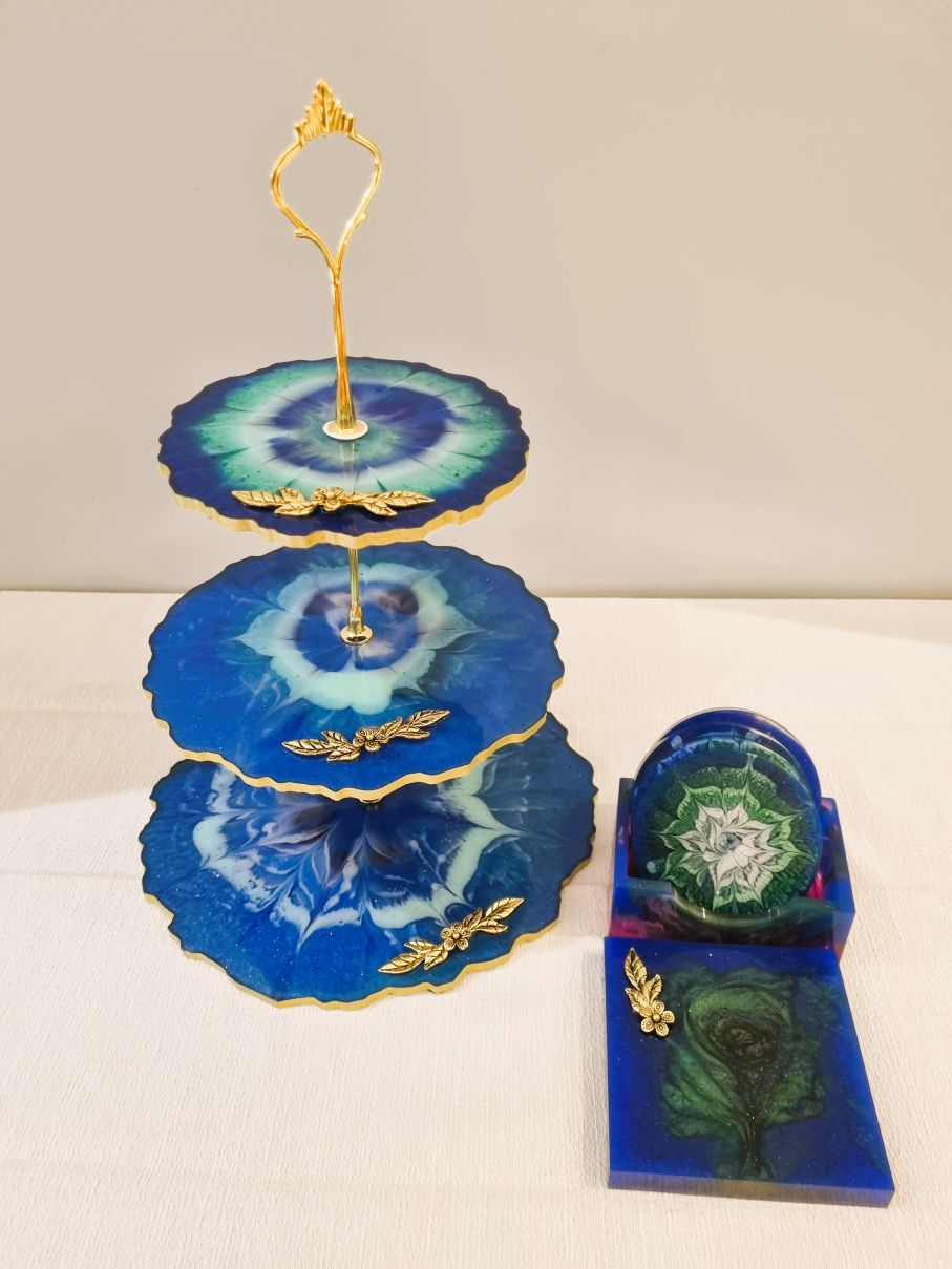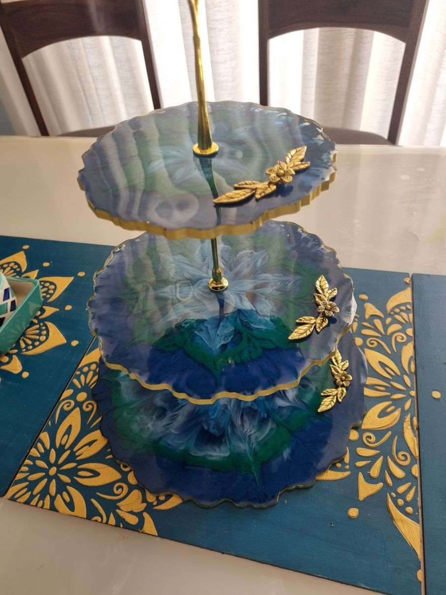 This is more than a cake stand — it’s a piece of functional art. The “self-blooming” resin technique produces an effect reminiscent of ocean waves or blooming flowers, making it a stunning focal point for your desserts or décor.