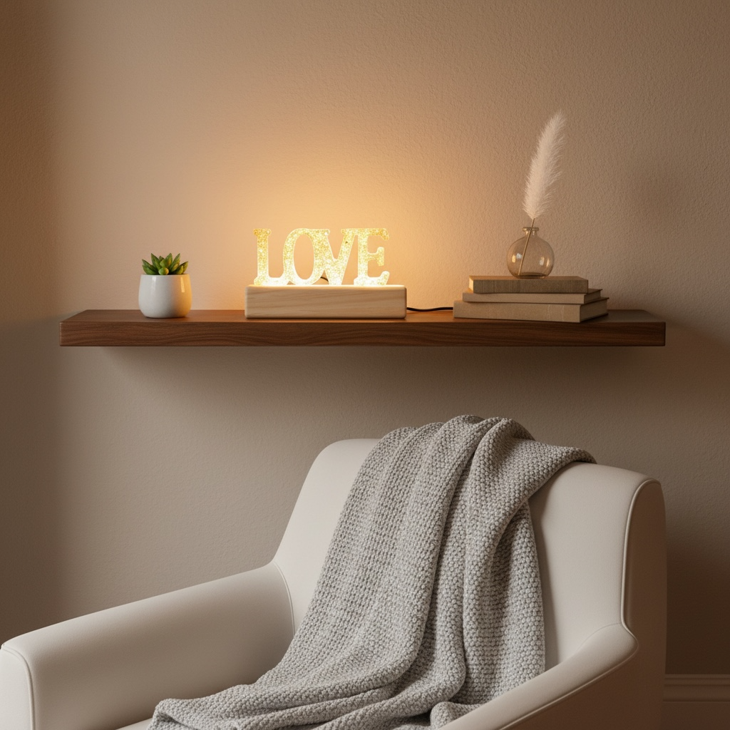 • Design: “LOVE” block resin art with LED base