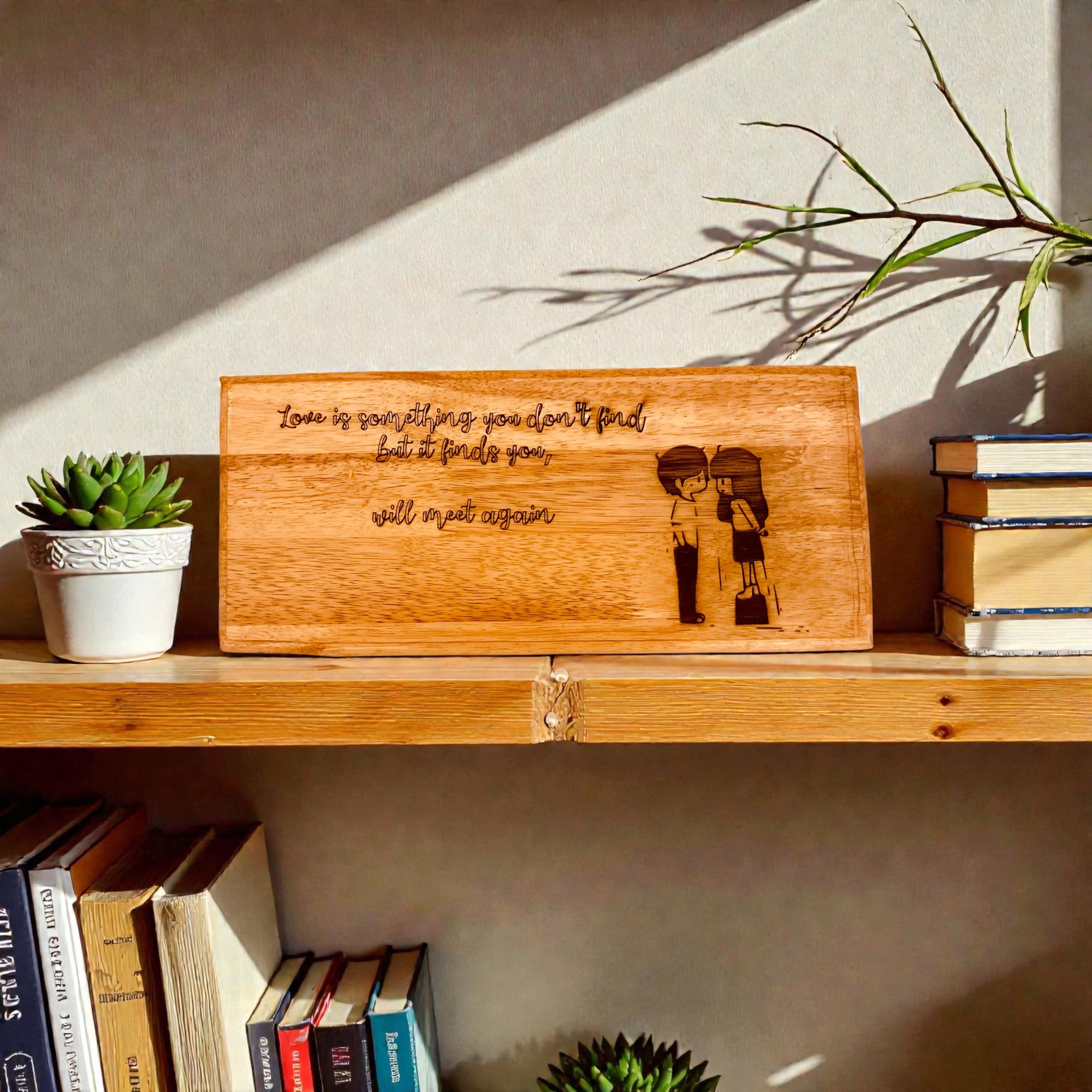 Celebrate love with this elegant handcrafted wooden engraved frame, designed to add warmth and emotion to any space. Made from premium-quality natural wood, this 15×8 inch piece features a heartfelt quote: